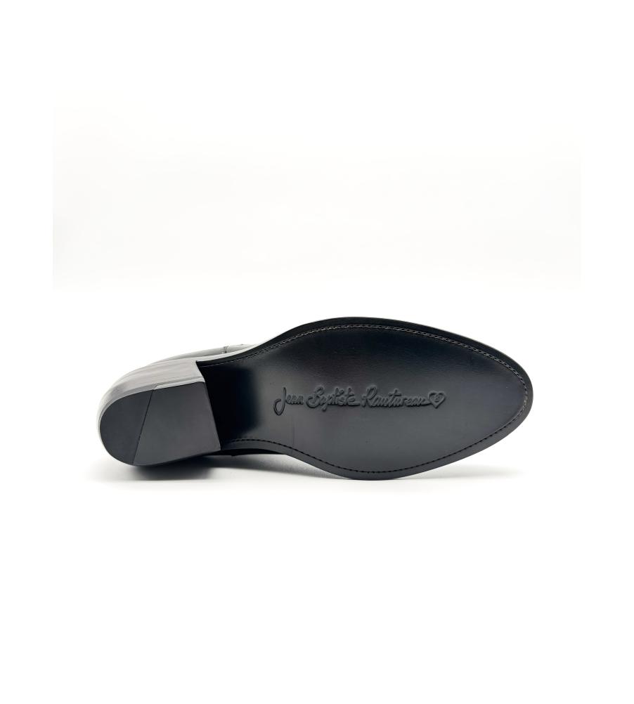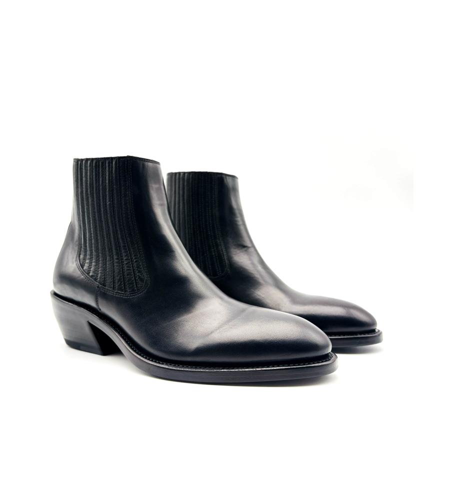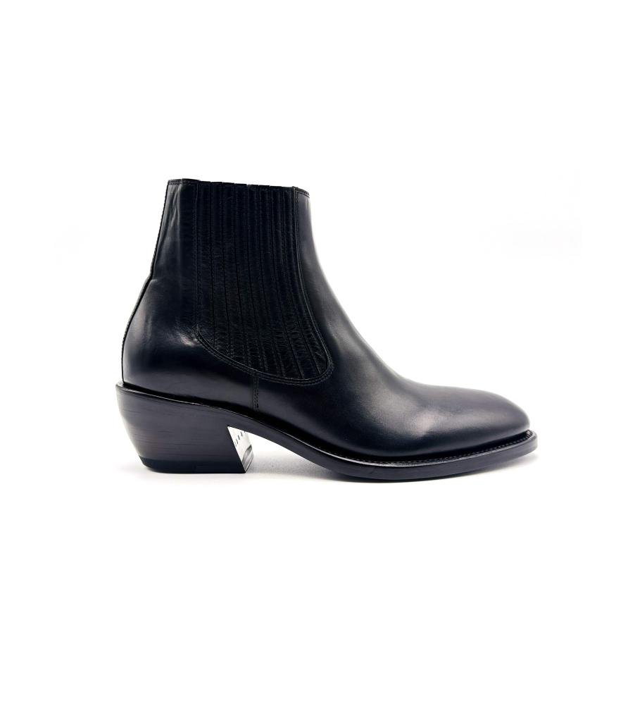 Boot à élastiques en cuir lisse noir avec talon biseauté